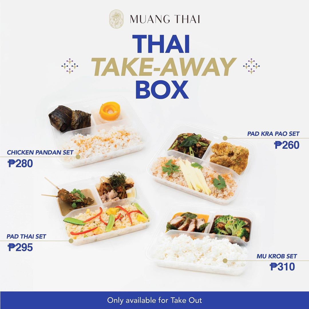 Who's up for some Thai food? Get to try some of Thailand's popular dishes with Muang Thai's Take-Away Box. These sets are available in Chicken Pandan Set, Pad Thai Set, Pad Kra Pao Set, and Mu Krob Set, and starts at P260. You can order via GrabFood or message 09668272346 / 0284264123.