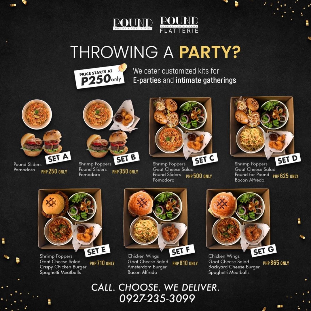 Some days there's just nothing better than a big juicy burger to satisfy our comfort food cravings. Throw in a few more things like shrimp poppers and salad, now that makes one big meal! POUND Burgers is now letting you customize your burger kits for virtual parties and intimate gatherings. Their basic kit, Set A, includes Pound Sliders and Pomodoro salad for just P250; while their biggest kit, Set G, is priced at P865 and it includes Chicken Wings, Goat Cheese Salad, Backyard Cheese Burger and Spaghetti Meatballs.