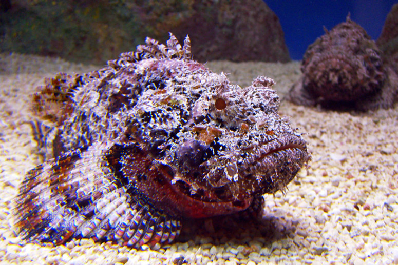 Stonefish is the world’s most venomous fish. It’s a close relative to scorpionfishes. Through its dorsal fin spines, the stonefish can inject a venom that is capable of killing an adult person in less than an hour. This is a medical emergency and needs to be treated at the ER. If stung, have this information ready on the way to the ER: