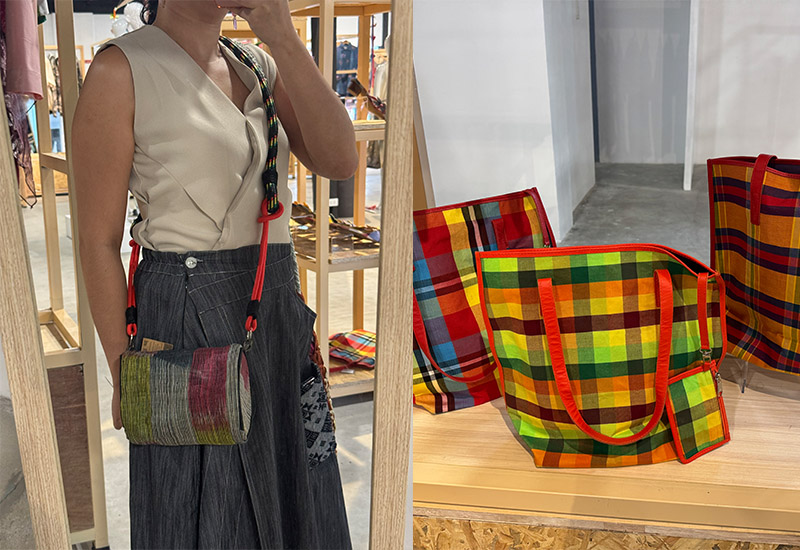 Tiano and Roweliza also collaborated on tote bags that come in colorful checkered designs for P4,099, while this P750 Pulo Handicrafts sling bag is a total steal.