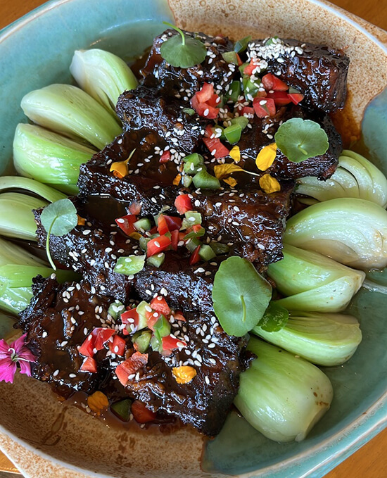 The beautifully plated baked US beef short ribs with honey vinegar sauce were tender and flavorful. “I pan-fried it with the sauce,” said the chef. “The beef is a symbol of strength, of being hardworking and healthy.”