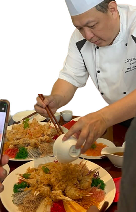 “Before we toss, we make a wish,” said Eng Yew Khor, Conrad Manila executive Chinese chef.