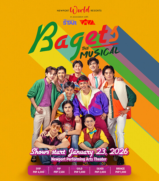 Catch Bagets The Musical this heart’s day and relive the stage adaptation of the iconic 1984 Filipino film that explores youth, friendship, and coming of age. The production stars Jeff Moses and Sam Shoaf as Topee, Migo Valid and Milo Cruz as Tonton, Noel Comia Jr. and Tomas Rodriguez as Gilbert, KD Estrada and Ethan David as Arnel, and Mico Hendrix Chua and Andres Muhlach as Adie.