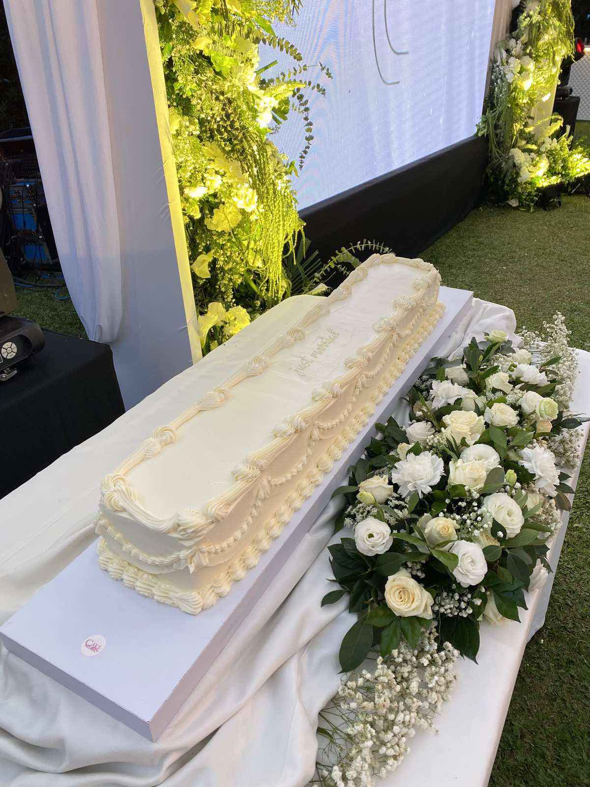 The actress' wedding cake elicited mixed reactions when photos of her wedding with her non-showbiz partner Dr. Reginald Santos circulated on social media. Some liked it as they found it unique and aesthetically pleasing, while others poked fun at it and said it looks like a coffin for its shape and color.