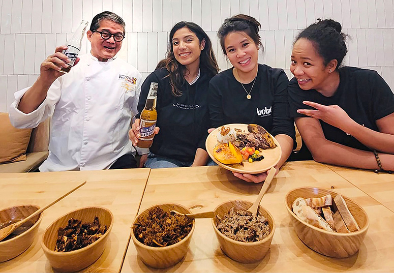 The four-course dinner included pig’s-ear sisig with matching ice-cold San Miguel beer, sinigang na bangus, pork belly adobo confit (con-fee), and halo-halo topped with ube ice cream and leche flan.