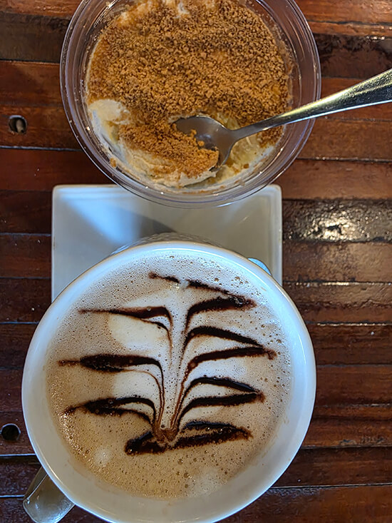 For an area smaller than Quezon City, Bacolod has quite a number of coffee shops and bakeshops. There’s Ann Co Cakes, notable not only for its cakes but also the paintings by Ann’s husband, Charlie Co, a renowned local artist. I found myself mesmerized at what seemed like a homage to Dali, which was fitting after finishing a dizzying cupful of banoffee with my flat white coffee.
