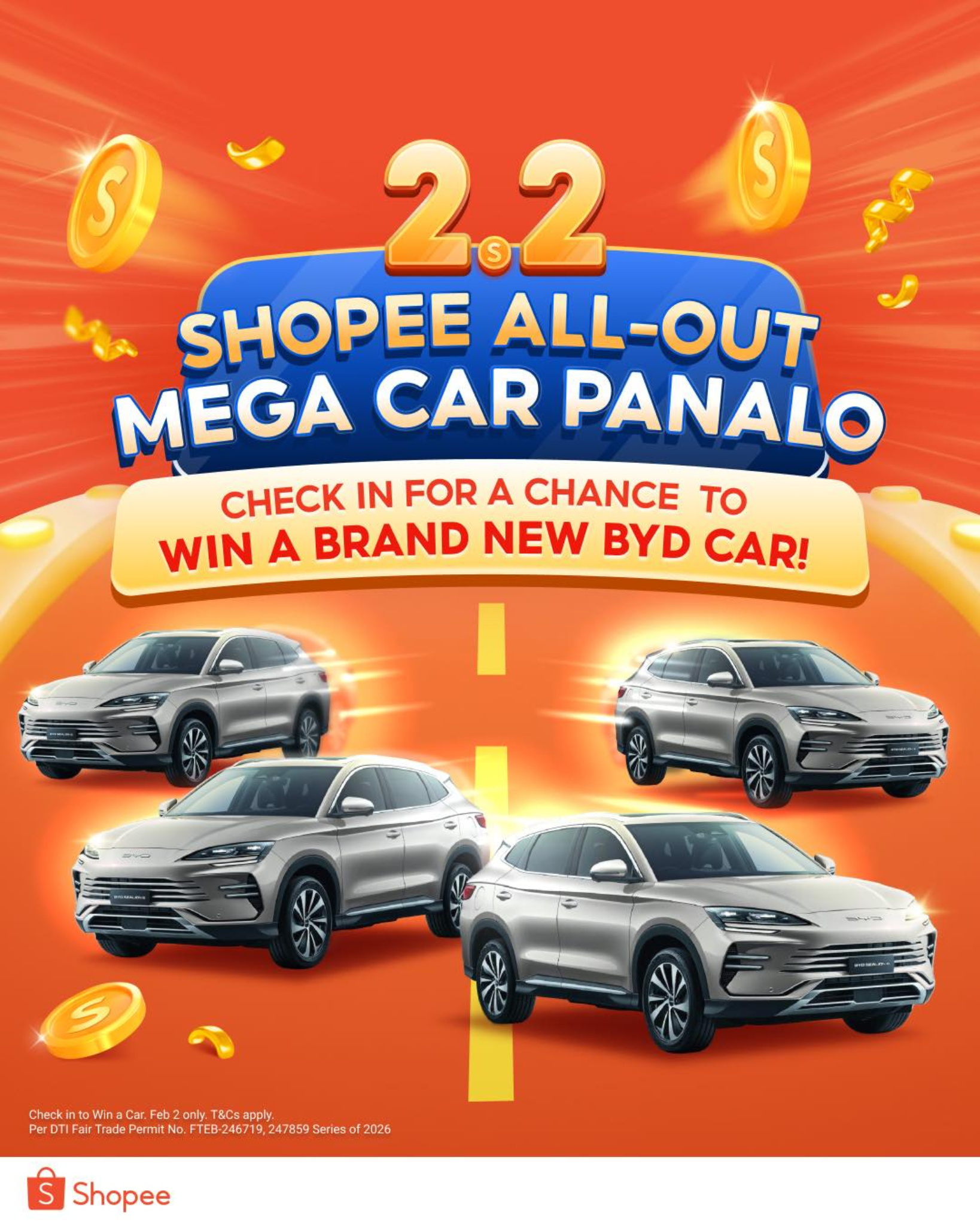 Beyond flash sales and vouchers, you could win a brand-new BYD car when you shop on Shopee. On 2.2, make sure to visit the Reward Coins page to secure your raffle entry. The grand draw takes place on Feb. 3.