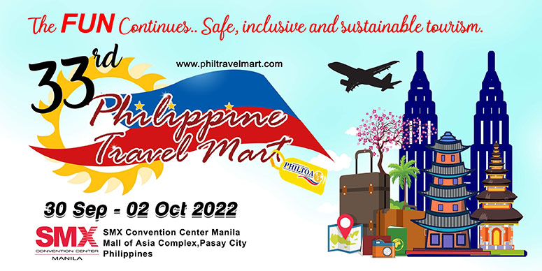The 33rd Philippine Travel Mart will take place from September 30 to October 2, 2022 at the SMX Convention Center Manila. SM Mall of Asia Complex, Pasay City. For more information, visit www.philtravelmart.com.