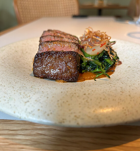 At Naeum, chef Louis Han bares it all—from his childhood in Korea to becoming an award-winning chef in Singapore. His newly renovated space reflects his maturity: free, uncluttered, and devoid of unnecessary distractions. His food is thoughtfully composed and more complexly layered than typical Korean dishes. His sea bream, bronzed and perfectly cooked, sits in a citrusy soy pool with daikon; Iberico Presa with perilla-layered onion; and butter-like Jeju abalone dressed in a beautiful seaweed vinaigrette. The work and thought behind each dish are evident both visually and on the palate.