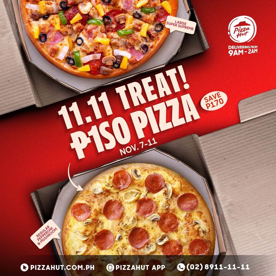 Until Nov. 11, Pizza Hut is letting you Buy 1 Pan Pizza or Stuffed Crust Pizza and enjoy a 9” Regular Pizza for only P1.