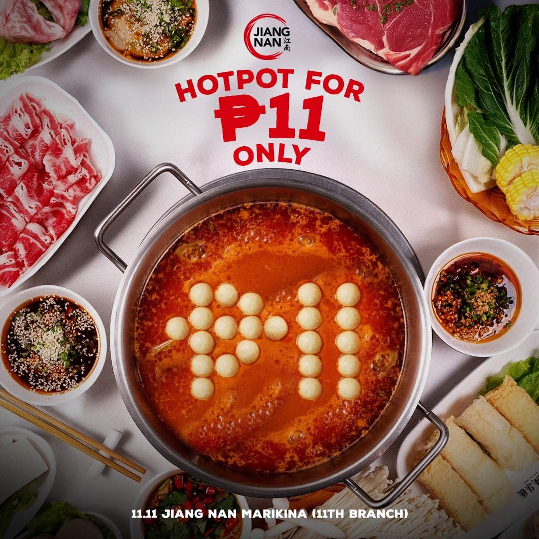 That's what you can get for only P11 at Jiang Nan's Marikina store—its 11th branch—on Nov. 11 from 11 a.m. to 3 p.m.