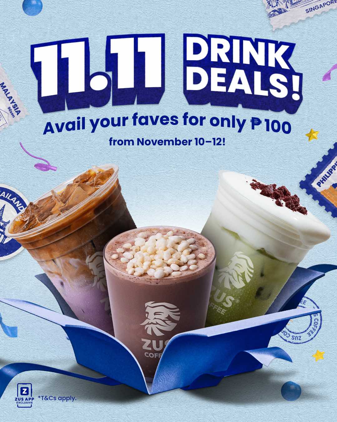Until Nov. 12, you can get some ZUS drinks for only P100 per cup via ZUS Coffee app pick-up transactions.