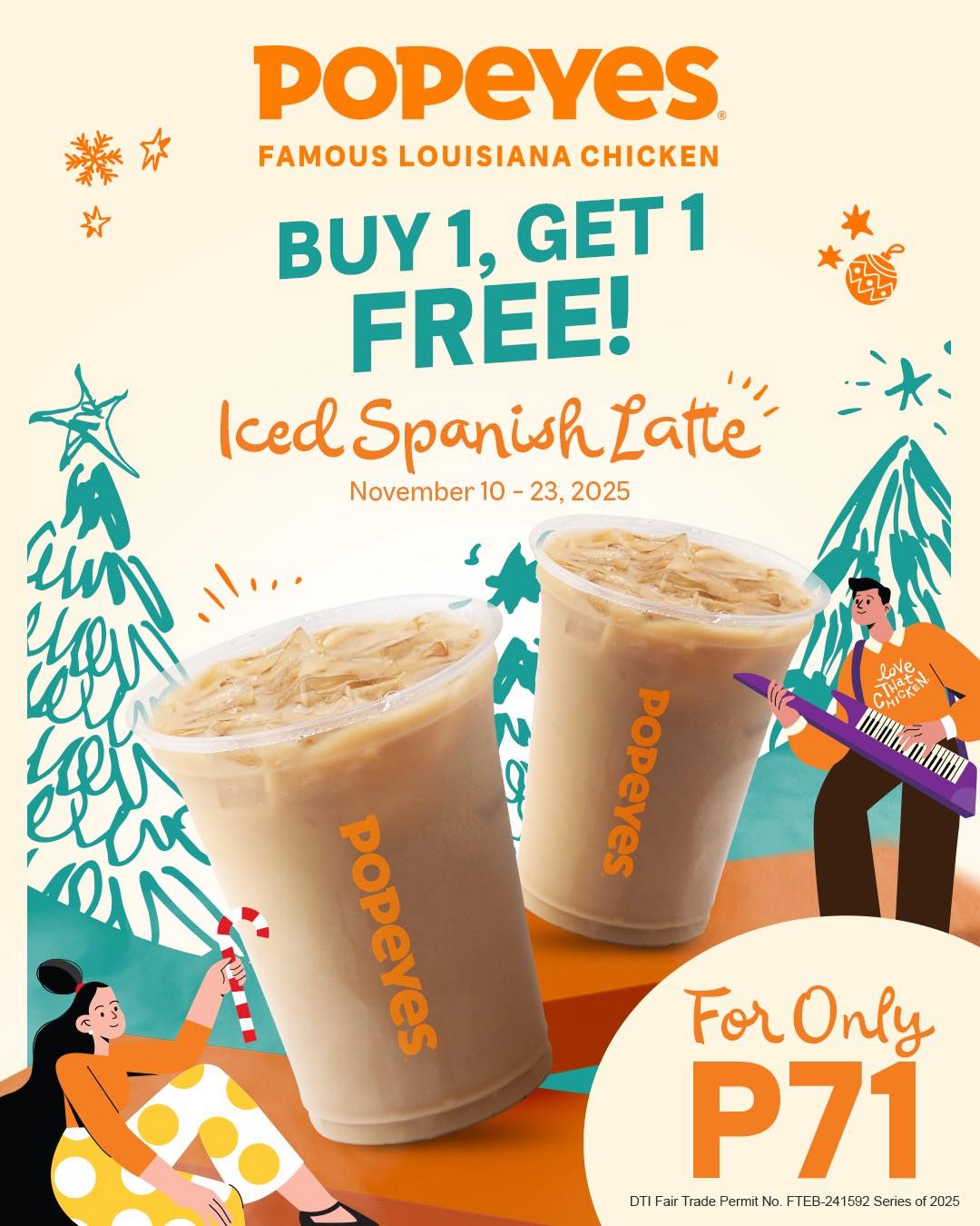 Good news: Popeyes is offering Iced Spanish Latte at a Buy 1, Get 1 promo.