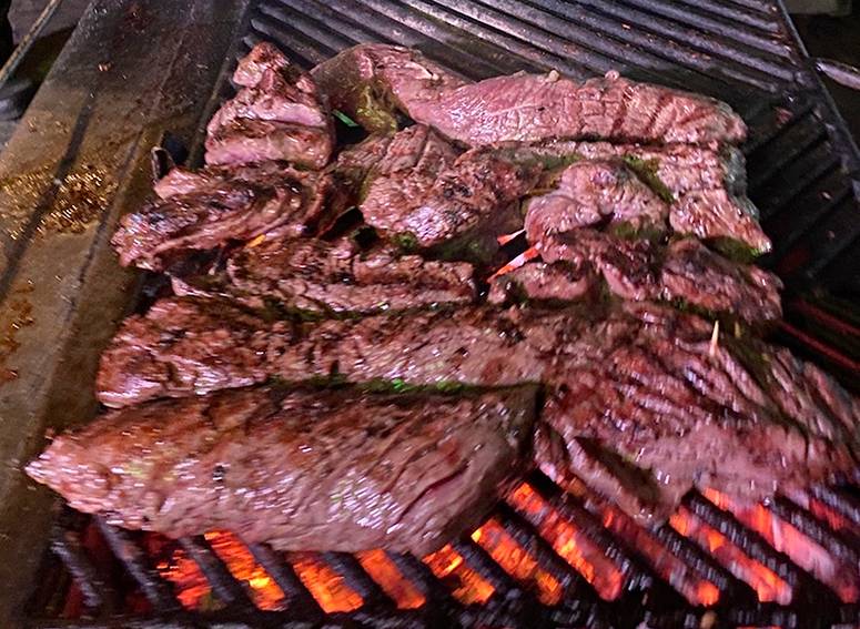 We moved on to the picanha, a Brazilian cut favored by churrascarias in Brazil, Uruguay, and Paraguay. “This cut has a layer or stream of fat around it and takes very well to charcoal grilling.”