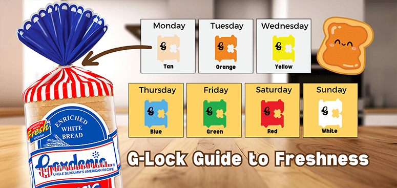 With Gardenia, she can use the color-coded G-locks to show freshness: tan for Monday, orange for Tuesday, yellow for Wednesday, blue for Thursday, green for Friday, red for Saturday, and white for Sunday.