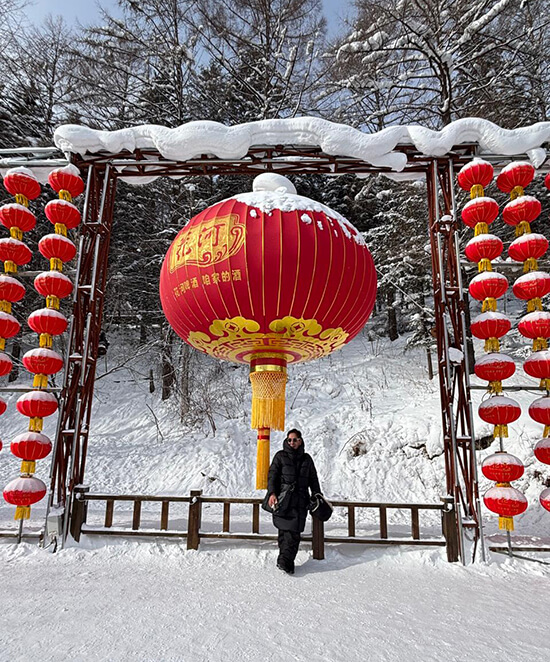I walked through Harbin’s Russian-influenced boulevards, the onion domes of Saint Sophia Cathedral cutting into the gray sky. The city’s proximity to the Russian border gives it a character unlike any other in China, shaped by overlapping histories and hard climates. Each breath felt sharp, almost abrasive, like swallowing shards of glass. Five hours away, in China Snow Town, nestled between Zhangguangcai Mountain and Laoye Mountain in the city of Hailin, snow erased edges and turned everything it touched into a fairy tale. Roofs bloomed with snow mushrooms. Lakeshores carried delicate balances of white. Yet every step in that winter wonderland whispered a challenge to my tropical soul.