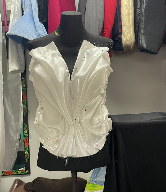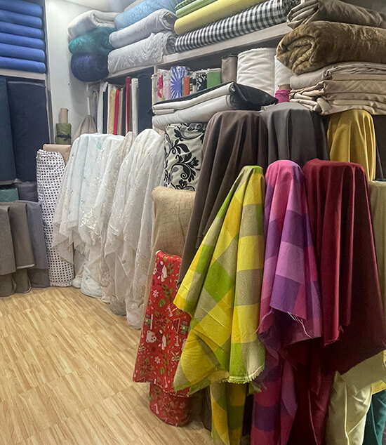 This difficult parking situation no longer exists, and rising on what used to be the parking lot is a gleaming, three-story building dedicated to fabrics, fashion, and sewers. There are even spacious elevators that take you to the second floor for the fabric shops, and the third floor for the tailoring, kustureras, and shops specializing in uniforms and embroidery services.