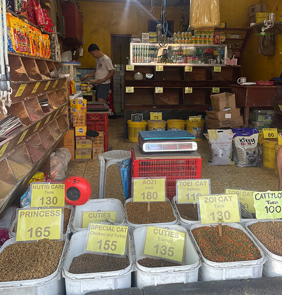 Beyond the fabrics and the fashion, Kamuning is a market, a smallish one that’s easy to navigate. It’s located off Kamuning Road near Tomas Morato. You turn the corner at the Mercury Drugstore, and on the road leading down to the main market, you can already find produce and fruit stalls, plus shops selling pet feed. If you only need a few veggies or fruits, you can purchase them here without having to venture into the main market.