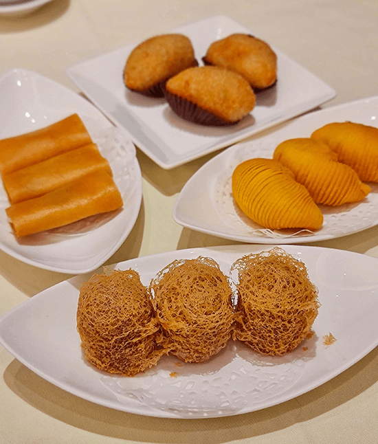 For fried dim sum, we had pan-fried rice rolls with dried shrimp and spring onion, fried dumplings with sticky rice and pork, taro puffs with pork and mushroom filling, shrimp spring rolls and my favorite, the fried flaky pastry filled with shredded turnip. The pastry reminded me of empanadang kaliskis, which I absolutely love.