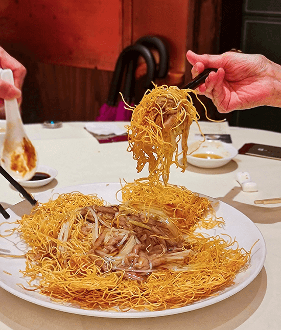 To add to the dim sum lunch, crispy roasted pork never fails and we tried something new, the fried noodle dish with shredded chicken and beansprouts. The noodles were fine and fried to a crisp, which made the dish all the more enjoyable. We spent the rest of the afternoon shopping for mom’s shoes, which is the only thing she needed to buy in Hong Kong.