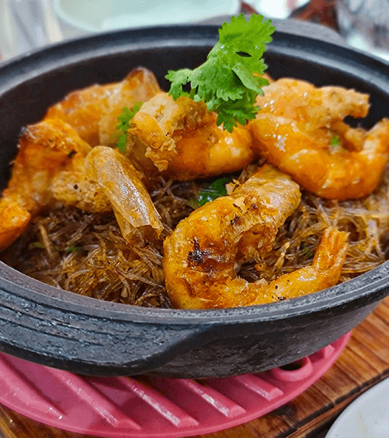 KARLA: Kam Tou is owned by one of the grandsons of Kam Shui Fai of Yung Kee as well. While Kam’s Roasted Goose has expanded to different countries, Kam Tou remains a humble, 20-seater restaurant. Aside from the roasted goose, we also ordered century eggs for starters, kailan and vermicelli with shrimp noodles in a clay pot.