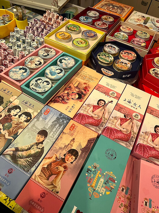 For a taste of Old Shanghai where Ming and Qing dynasty architecture merge with classic garden scenery, we went to the Yuyuan Tourist Mart on Fangbang Middle Road (situated next to Yu Garden and the City God Temple), where we shopped for the “big 4”—silk, porcelain, jade, and tea—as well as crafts and souvenirs. We found exquisitely hand-embroidered fans from Suzhou, silk brocade purses, “Snow Cream” cosmetics in vintage packaging, and nostalgic White Rabbit candy for pasalubong.