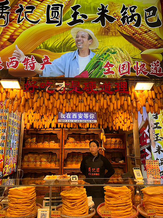 At the museum shop at the Terracotta Army site, you can take home a piece of the dream with warrior replicas from pocket size to life size. There are also shops on the way to the parking area, selling delicious nougats and other sweets made on site. We saw some beautiful silks and brocades, some worn by visitors who rent them from costume shops where they get dressed and made up with wigs and full Ming era styling. These shops also sell new pieces like wrap-around skirts and fashion accessories, which can look very contemporary. Jade, pearls, porcelain, and specialty tea are also good buys, as are intricate craft items like cut-out paper art and shadow puppets.