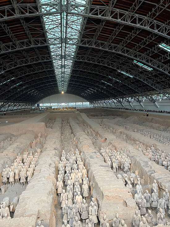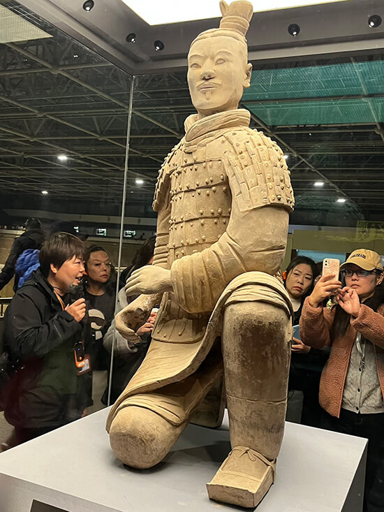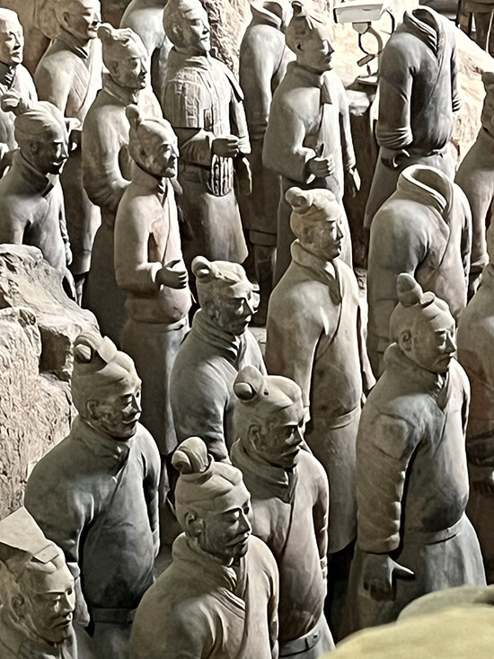 You certainly sense the pride they have in their country’s treasures, and you can see why. Photos and videos did not prepare us enough for the magnificence of these terracotta figures, all life-size, with the warriors ranging from 5’9” for the soldiers to 6’7” for the officers, each one different in face, height, uniform, and hairstyle from the next, while displaying an unusual naturalism relative to typical Qin era sculpture.