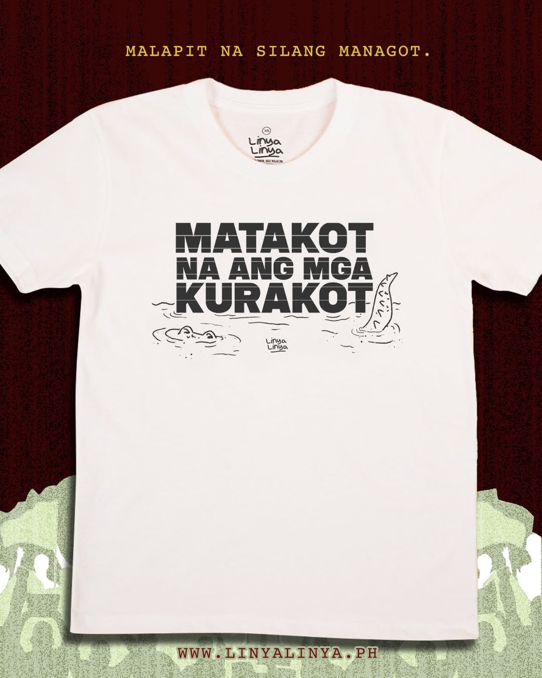 Taking direct aim at those in power, Linya-Linya's shirt boldly declares "Matakot na ang mga kurakot" to corrupt officials.