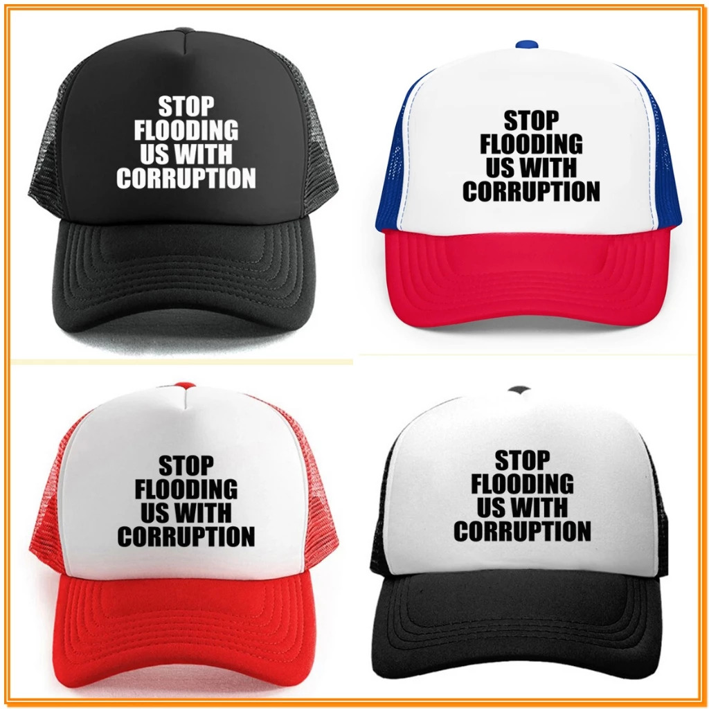What we want is for the involved officials to "Stop flooding us with corruption"—and this hat says it loud and clear.