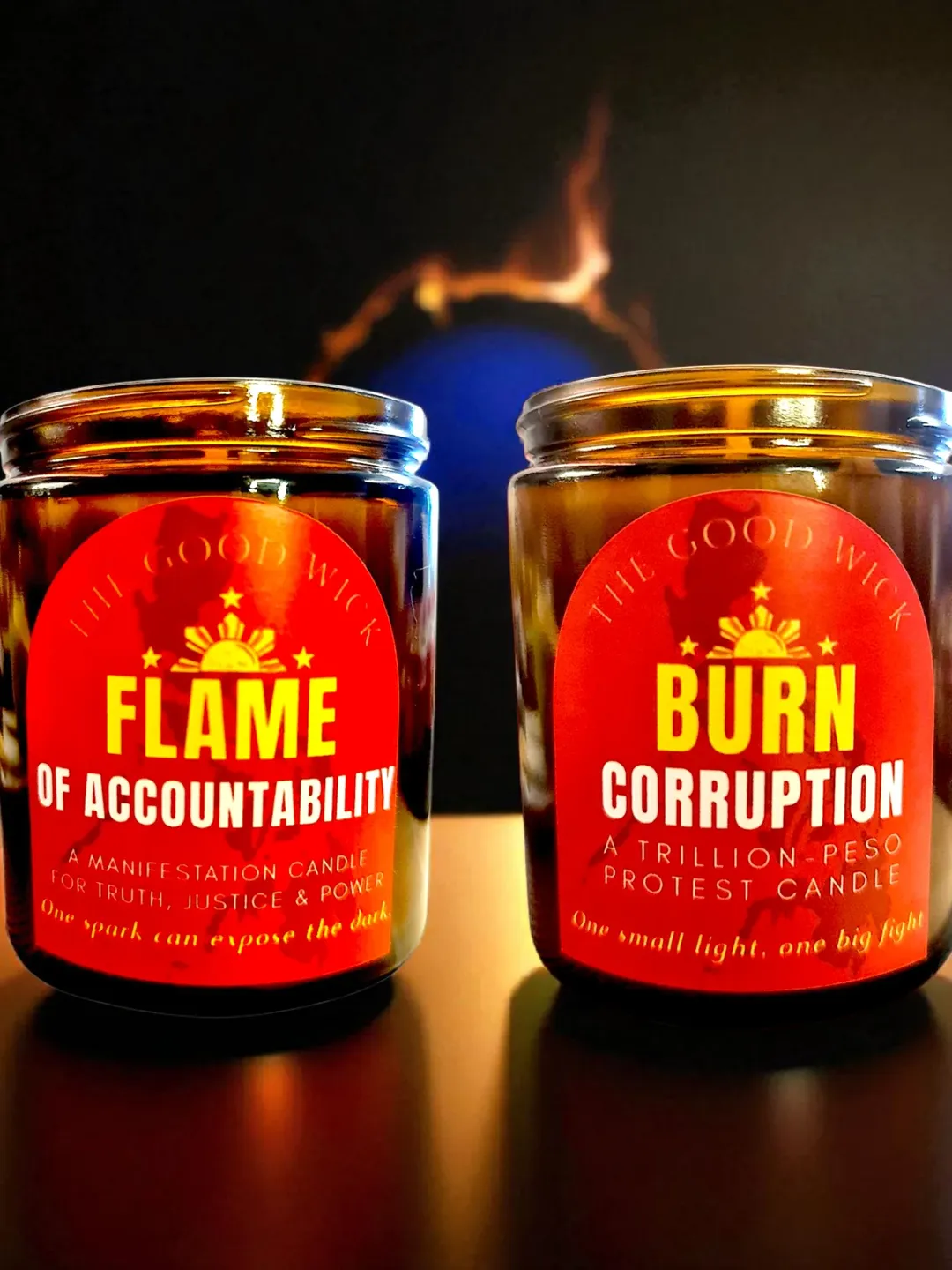 The candle shop is offering two versions. One is the "Burn Corruption: A Trillion Peso Protest Candle," which took inspiration from the Trillion Peso March that took place last Sept. 21.