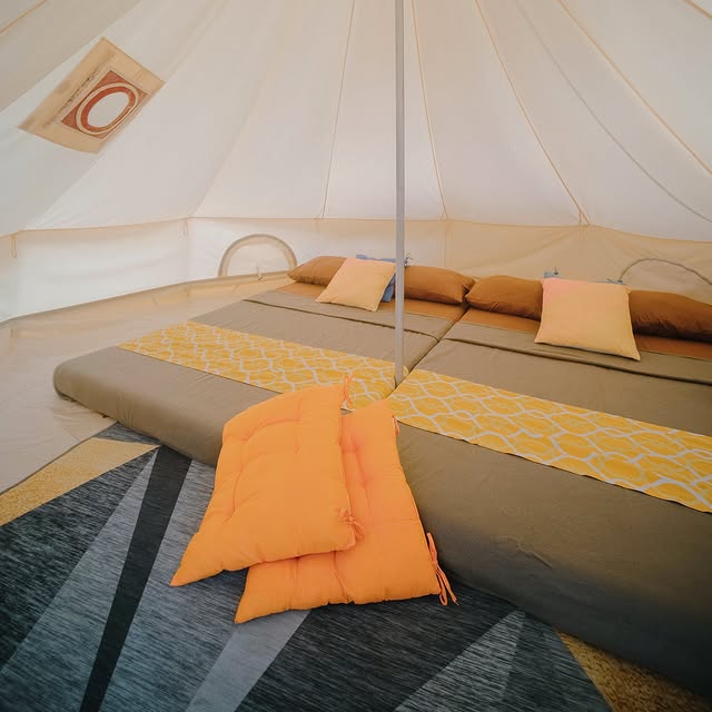 Each tent is stylish, air-conditioned, and comes with its own private pool. Guests can binge-watch shows at the open cinema or feast on Korean favorites on-site. It’s the perfect mix of nature and modern comfort.
