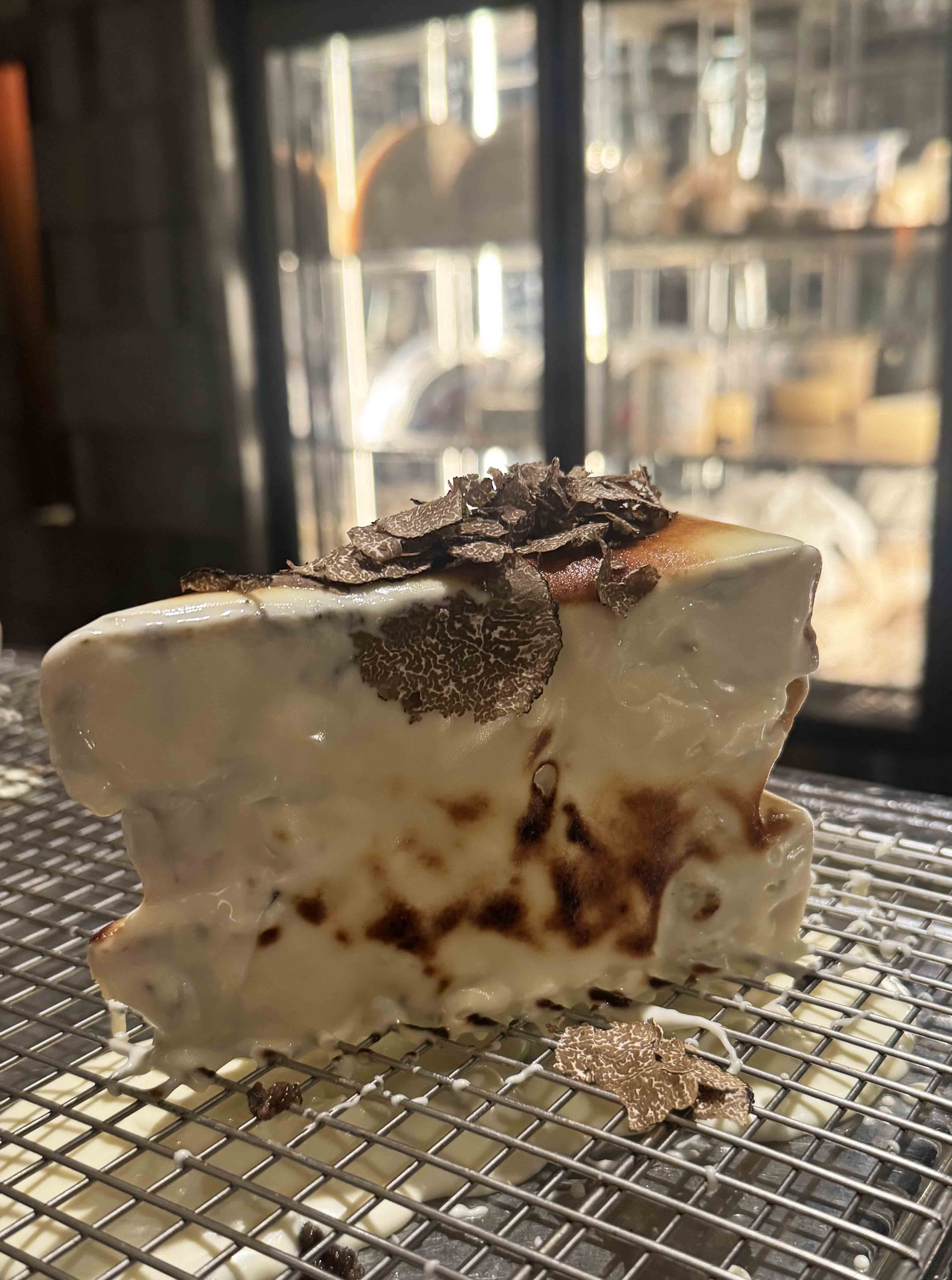 Chef Luca challenged me to create my own Gorgonzola “cake." I stacked two layers of Gorgonzola slices, covered them with rich white chocolate, and added freshly-grated truffles, creating a surprisingly decadent combination.