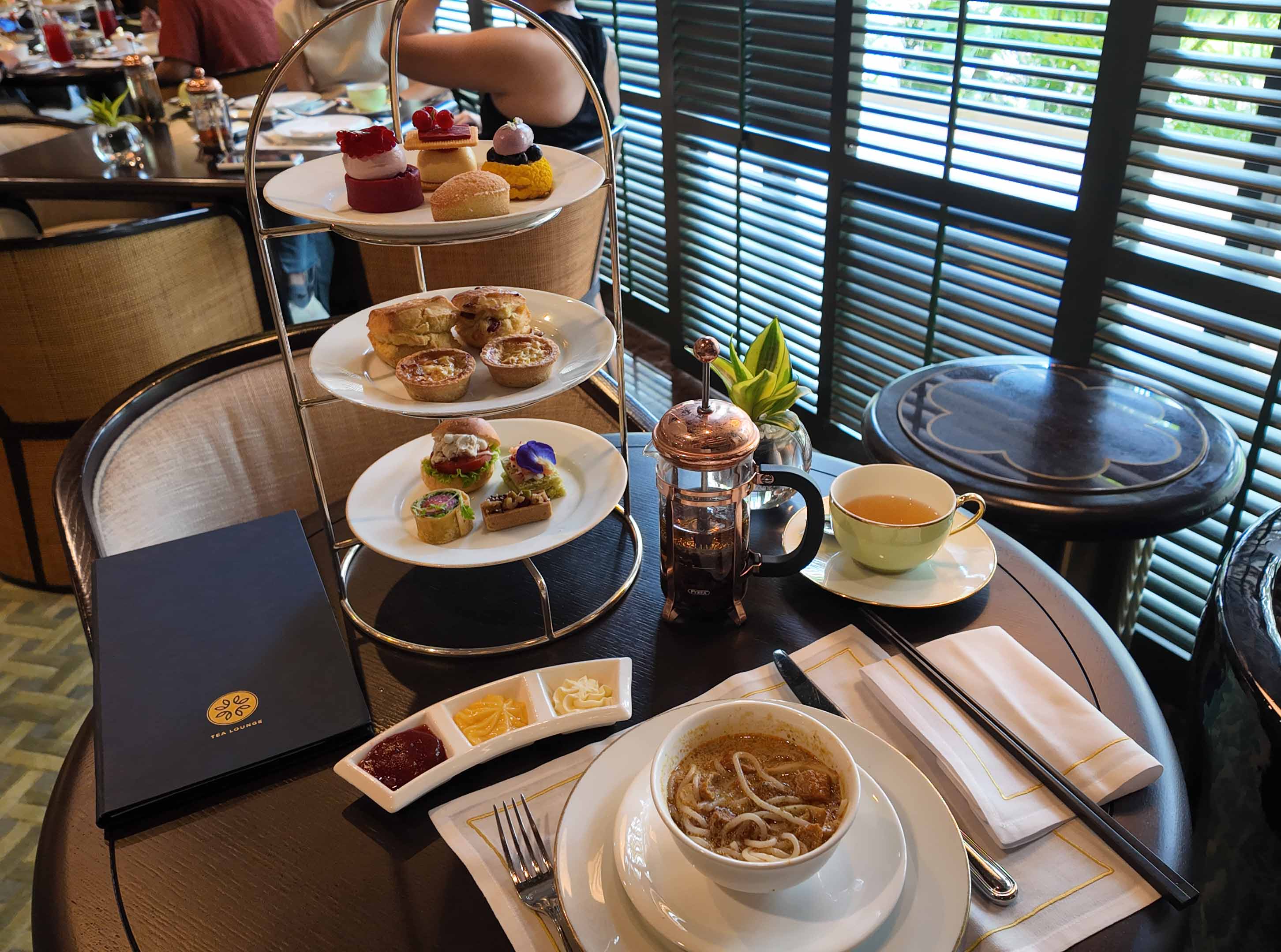 Don't miss the savory delights: the Smoked Duck Candied Orange Quiche and Smoked Salmon Avocado Sandwich. For dessert, try the Raspberry Peach Tart or the Lemon Blueberry Choux Puff. Pair any of these with a pot of tea—from classic green, white, or rooibos, to their uniquely local Singapura Spice blend, which features green tea with mango, pineapple, curry leaves, and lemongrass.