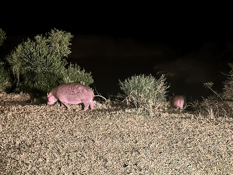 My granddaughters were utterly captivated by the enchanting wildlife that surrounded us during our stay; while enjoying lunch in the garden, we watched in delight as warthogs grazed on the lush grass of the lawn. Each evening, we were treated to the majestic sight of elephants wandering through the camp, their gentle presence adding to the magic of our adventure. Before dawn, the curious sounds of hippos feeding just beside our tent would awaken us, prompting the kids to eagerly roll up the window covering to peek at these magnificent creatures, their eyes wide with wonder at the beauty of nature unfolding right outside our doorstep. Though we missed the elusive rhinoceros—the rarest of the Big Five, who typically grace the landscape in the early morning—we remained grateful for our unforgettable encounters with the other Big Four. Each sighting, from the regal lions lounging under the shade to the majestic elephants wandering gracefully through the bush, left us in awe and filled our hearts with appreciation for the incredible wildlife in this extraordinary wilderness.