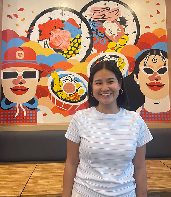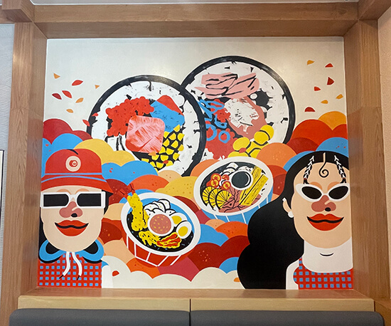 The colorful mural on Wooshi’s wall by young artist Jill Artech adds to the playfulness of the space, which is sure to attract the Gen Z clientele that Wooshi is aiming for. Jill captures the youthful vibe of the brand and the vibrant energy of Manila with its sunsets, traffic, and people.