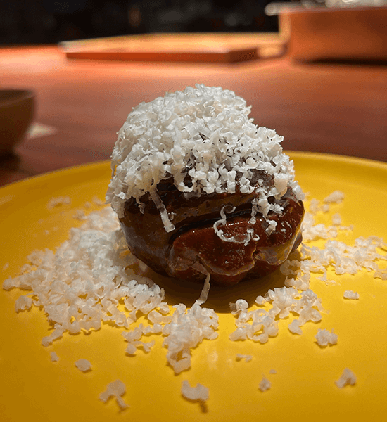 Their signature ensaymada was slightly bigger and more caramelized, still lusciously enrobed in Malagos gouda shavings, while their successful iteration on a Spanish tortilla—egg with melty potatoes, crustacean sauce and fermented peppers and black garlic—ate better than the traditional.