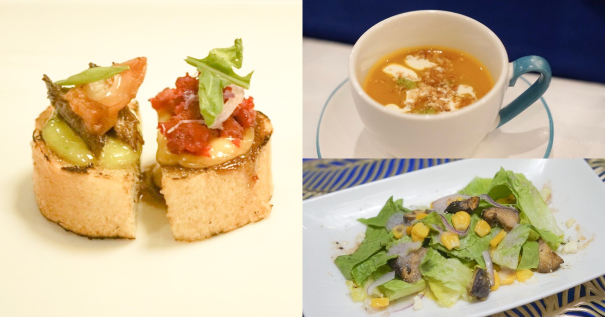The one-of-a-kind experience kicks off with some Amuse-bouche, which is French for "mouth amuser." There's The Filly with duck adobo, scallion cream, and caramelized lychee, and Maria's Toast featuring homemade longganisa, guava jam, arugula, and salted egg cream shallots both on toasted French baguette, with each one meant to be devoured in a single bite. You shouldn't miss out on the Kalabasa Soup made even more exciting in terms of taste and texture with candied pili nuts and the Luzviminda Salad amped up with ricotta and lychee vinaigrette.