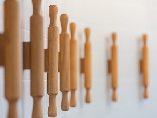 The butter yellow color theme of Flour Pot was inspired by the SyCip Rum Cake, Jay Jay and Rhea’s first flour production. Rhea’s eyes still light up when she describes the golden yellow hue of the blend of egg yolks, butter, flour, and rum in the cake mold. In fact, she has quite a collection of rum cake molds that she has incorporated them into the restaurant’s decor.