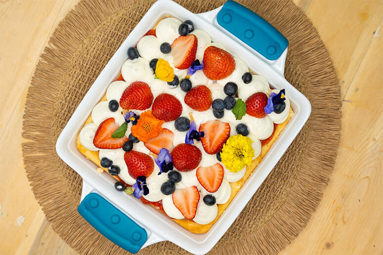 A baker who traces her ties with Maya to her first cooking class at age 13, Rhea demonstrated her recipe for Mixed Berries Tres Leches, which she described as the restaurant’s “pahabol” cake—one which she can whip up easily when they’re running out of dessert. She emphasized the role of baking powder in the recipe, which she said helps relax the gluten of the flour and makes the cake rise better.