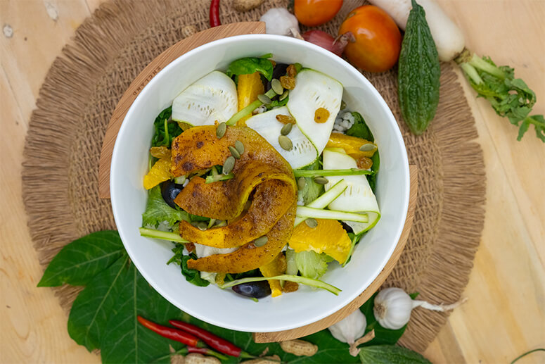 For his part, Jayjay showed how to prepare Spanish-style tuna crostini, vegan glow salad, roasted pepper and cashew pasta, and chicken putanesca casserole. “We use artisanal salt such as those made in Pangasinan and Zambales,” he said while mixing the maple vinaigrette for the salad. For the oranges, they use the Satsuma variety grown in Nueva Vizcaya.