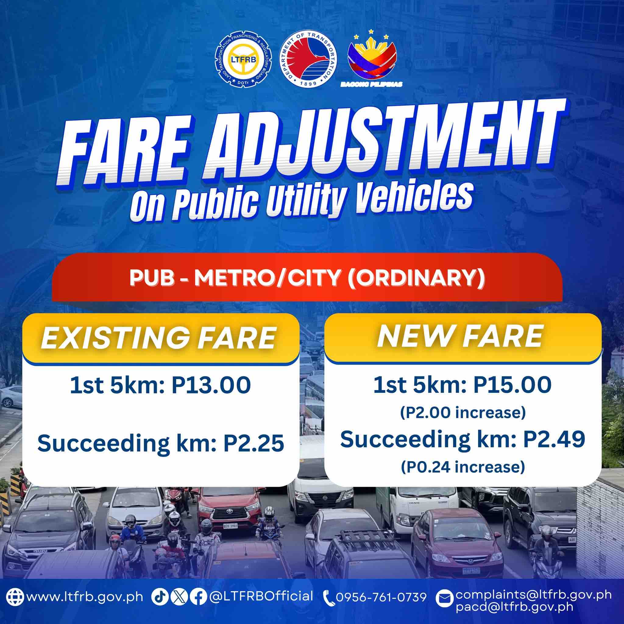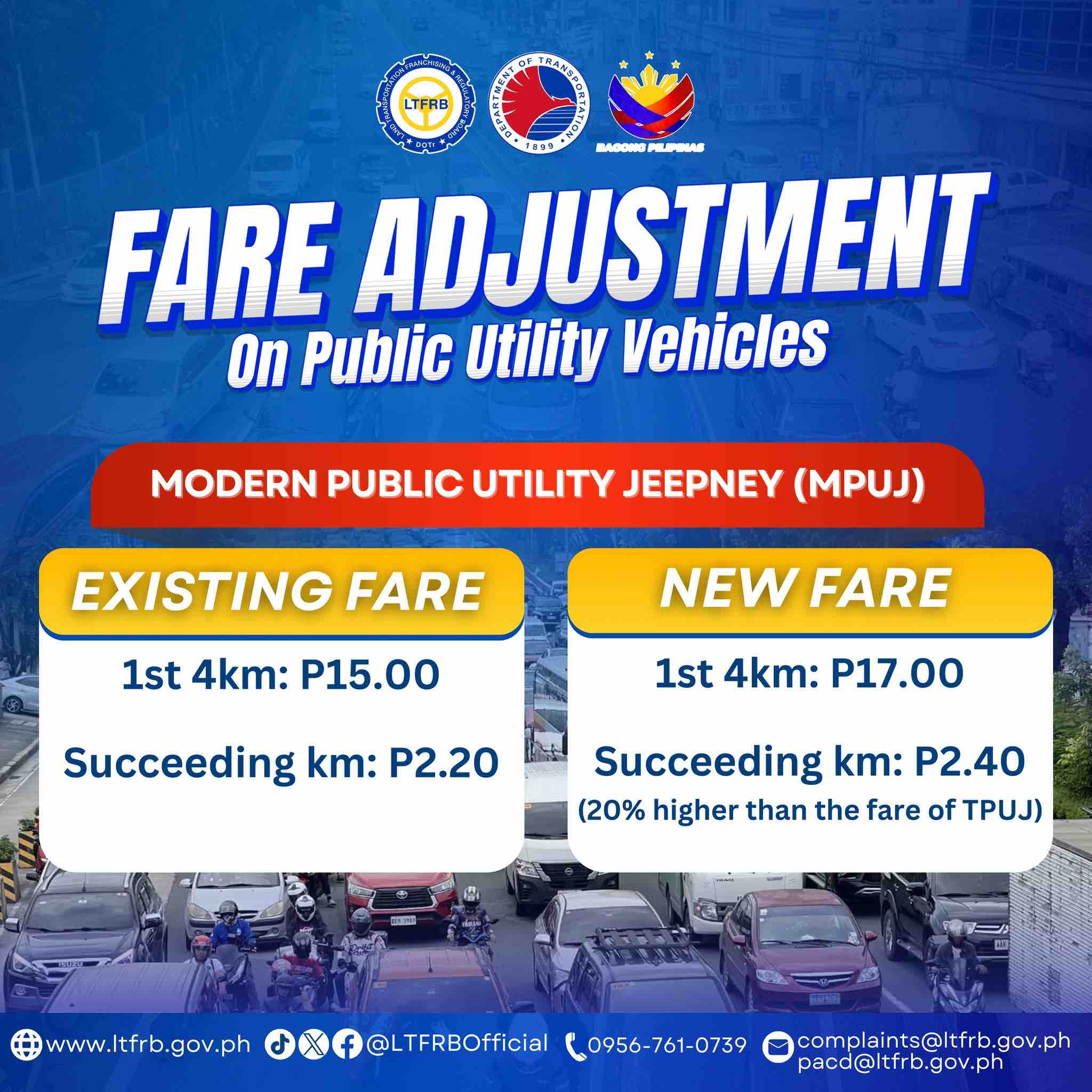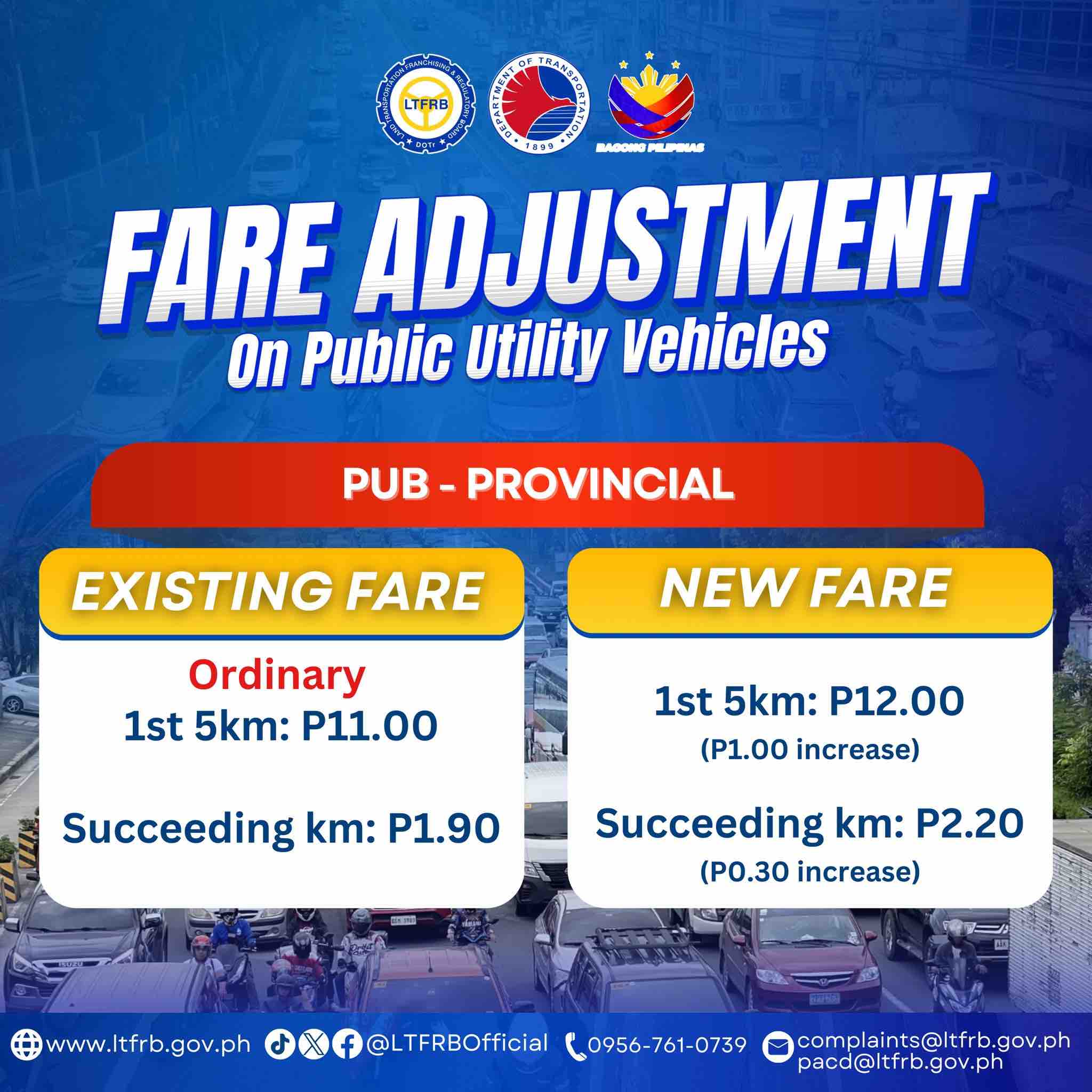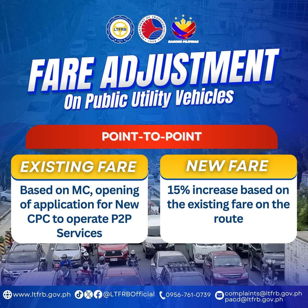 The LTFRB announced fare adjustments on public utility vehicles amid rising fuel prices due to tensions in the Middle East.