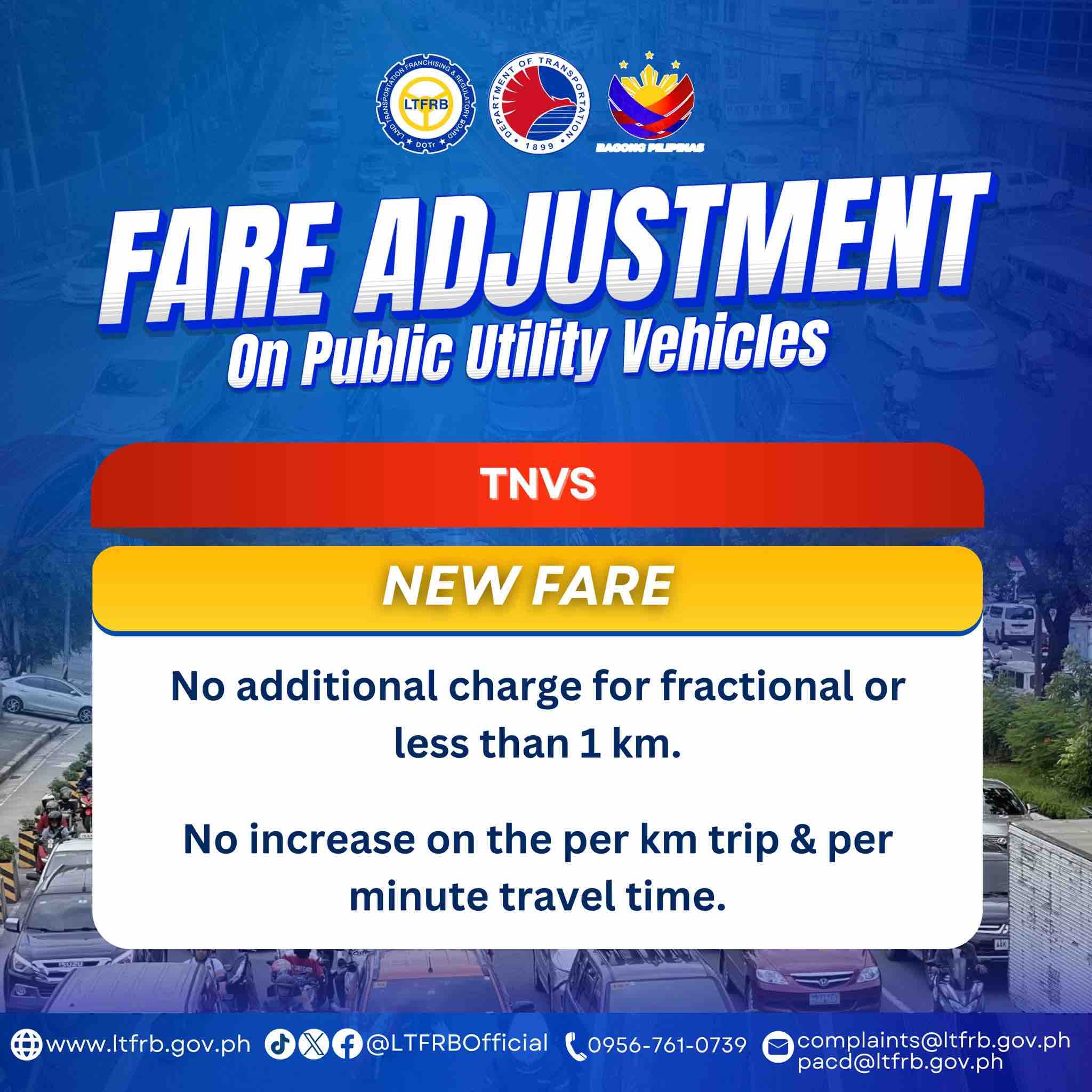 But according to the board, TNVS will have no increase in the charges per kilometer and per minute travel time.