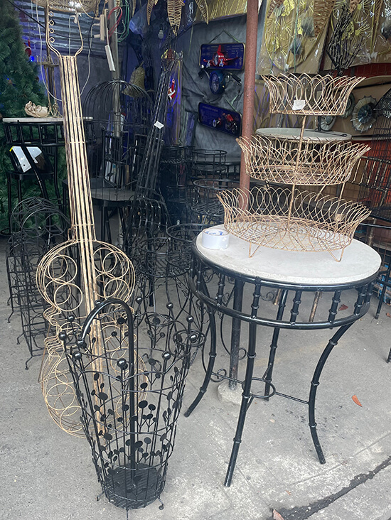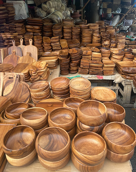 By the time you’re done at the market and the Chinese grocery, all the stalls at Dapitan Arcade will have opened. From Suki, the first stalls you see on the street are well-carved wooden items, usable and beautifully finished salad bowls, chopping boards, and serving dishes. There are whimsical animals made of twigs, meant to hold perhaps candles or flower arrangements. There are slabs of tree trunks that can be used as serving boards for cheeses and charcuterie, or desserts.