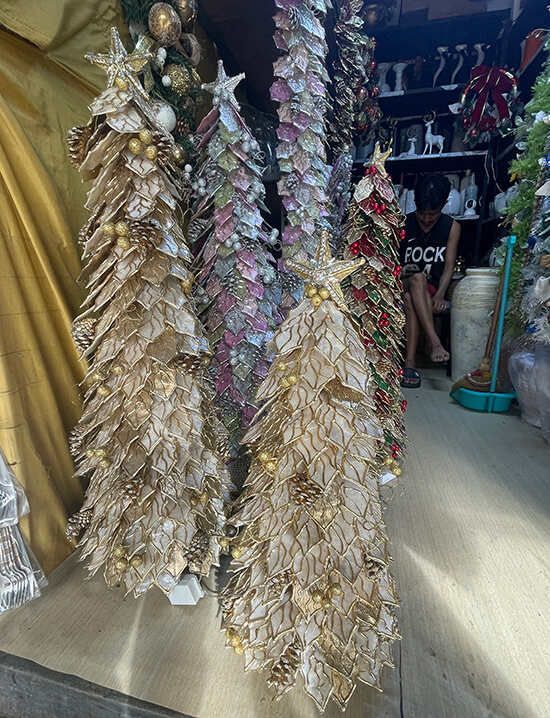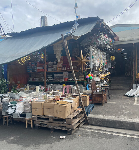 But savvy shoppers in the know also flock to Dapitan Arcade on Dapitan St., which intersects Mayon, in the months building up to Christmas. Located diagonally across Suki Market, this is a terrific source for gifts that include factory overruns, ceramics from China and, more recently, an increasing number of handicrafts from around the country. The stalls of eye-catching wood carvings, sophisticated dinnerware and home décor have even spilt into the adjacent streets, making passageways tight and parking almost all but impossible during the holidays.