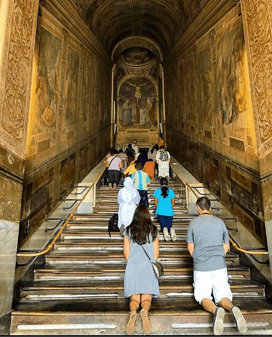 After our pilgrimage to walk through all four Holy Doors in Rome, my niece Rica Lopez-de Jesus and I decided to visit the Holy Steps. Strangely enough, my four years of living in Rome never led me here. That was over 30 years ago, and I realize now that my priorities were very different back then.