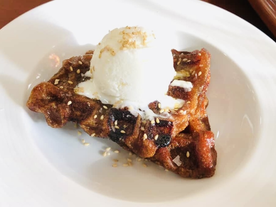 Chef Sharwin Tee enjoys cooking tikoy with his waffle iron. "This method gives me contrasting textures of crispy and chewy, and contrasting temperatures of warm and cold, with the ice cream. Unless you have a heart of stone, your inner child cheers for anything in waffle form," he told L!fe.