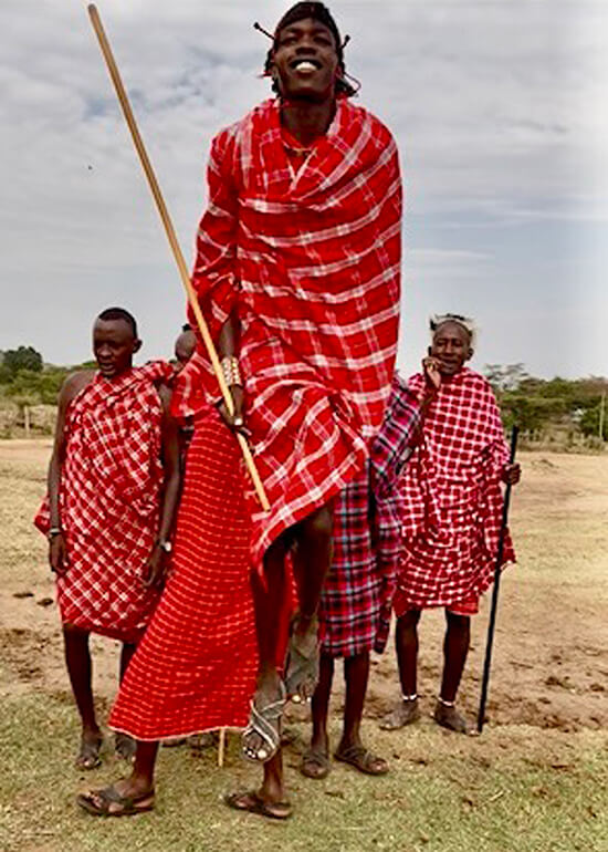 In the old days, the rite of passage to manhood for these proud warriors was slaying a lion. Today they just tell stories about it. Their livelihood now is tourism, and they put on a show for us, singing, dancing, and jumping. Fun fact: In Maasai culture, the man who jumps the highest gets the most women (they’re allowed to have more than one wife).