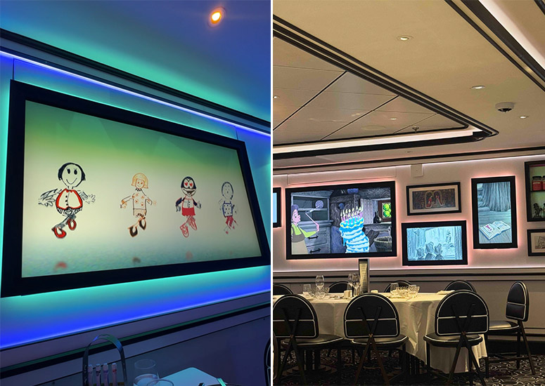 Jazmines highlighted the sequence scored by the London Symphony Orchestra that "focuses on the gathering, the preparing, the making of food, using clips from Disney and Pixar animations." Before your food arrives, you’re asked to draw a character on a sheet of paper. By dessert, the screens around the room feature everyone's animated version of their artwork. (Pro tip: Don't forget to ask your server for your drawing as a souvenir!)
