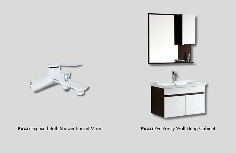 For smart storage, the Pozzi Wall Hung Cabinet, crafted from PVC and glass, offers durability, moisture resistance, and a clean, modern aesthetic that keeps your essentials organized while standing up to daily wear. Its built-in mirror adds function and depth, making your bathroom feel brighter and more spacious.